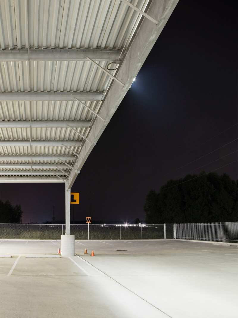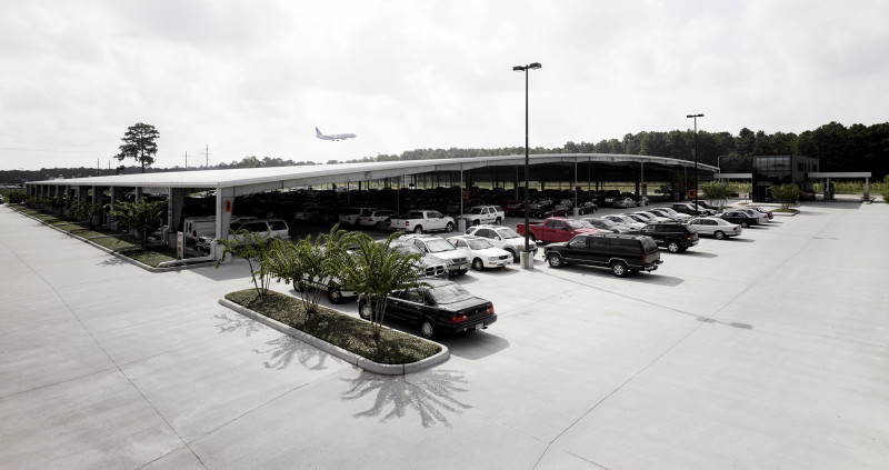 The parking facility at George Bush Intercontinental Airport is a private commercial extension of the airport’s infrastructure and economic network, acting as an intermodal link between automobile travel and the terminal. The project organizes two primary architectural ideas—landscape and transition—to reinforce the experiential threshold of arrival and departure.