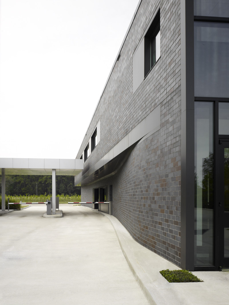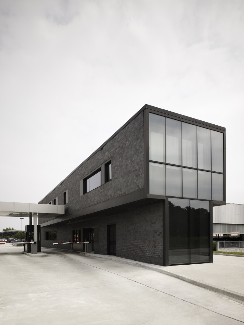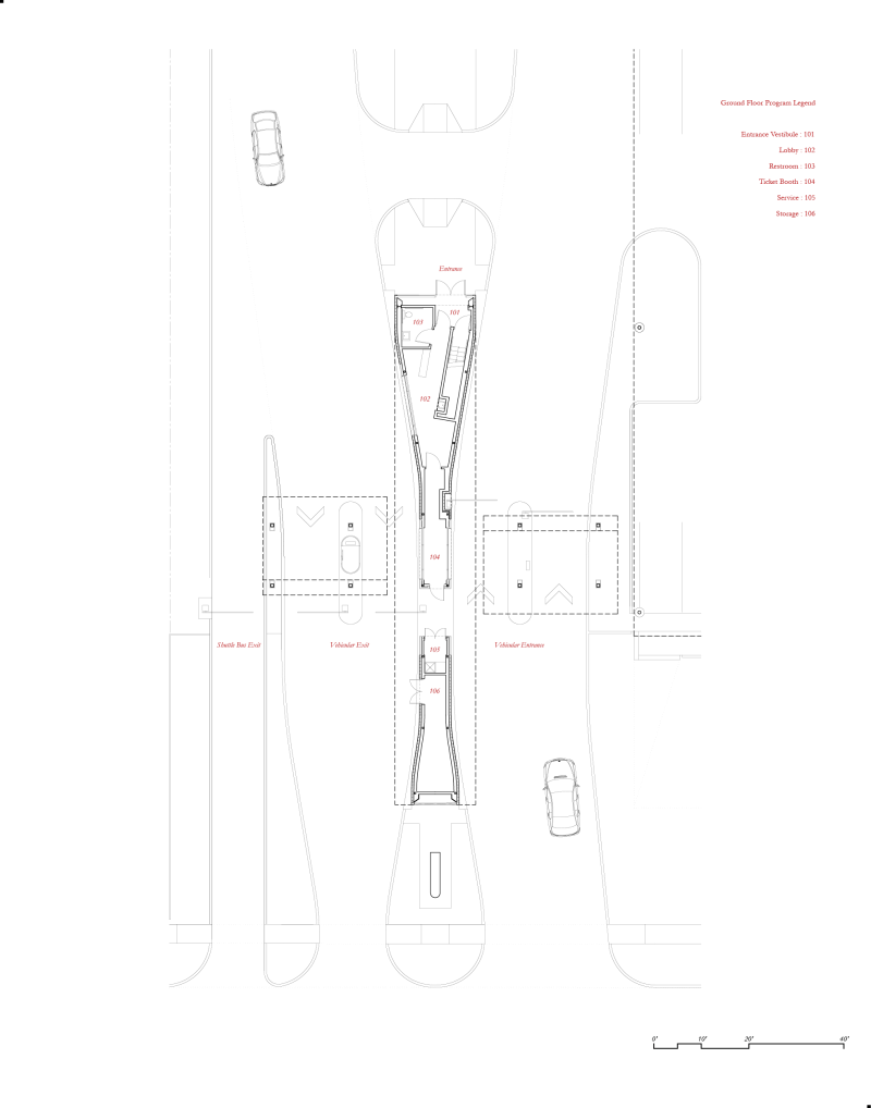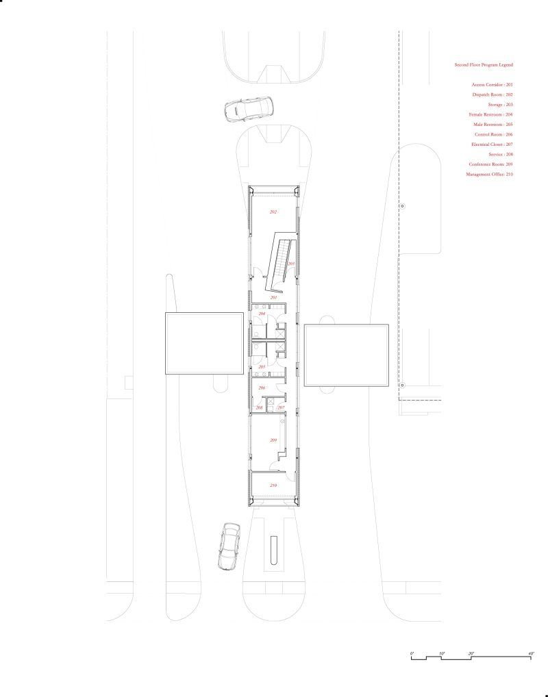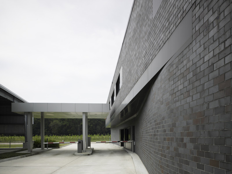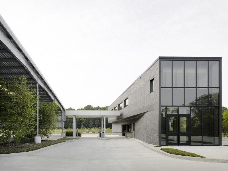 At a more intimate scale, the Administration Building provides a deliberately calibrated architectural moment, which frames the entry sequence with a spatial compression that registers the transition from infrastructural landscape to human-scaled interface. Its elongated volume brings travelers into closer proximity with material surfaces and defined spatial thresholds.