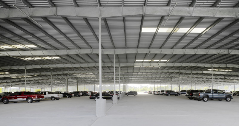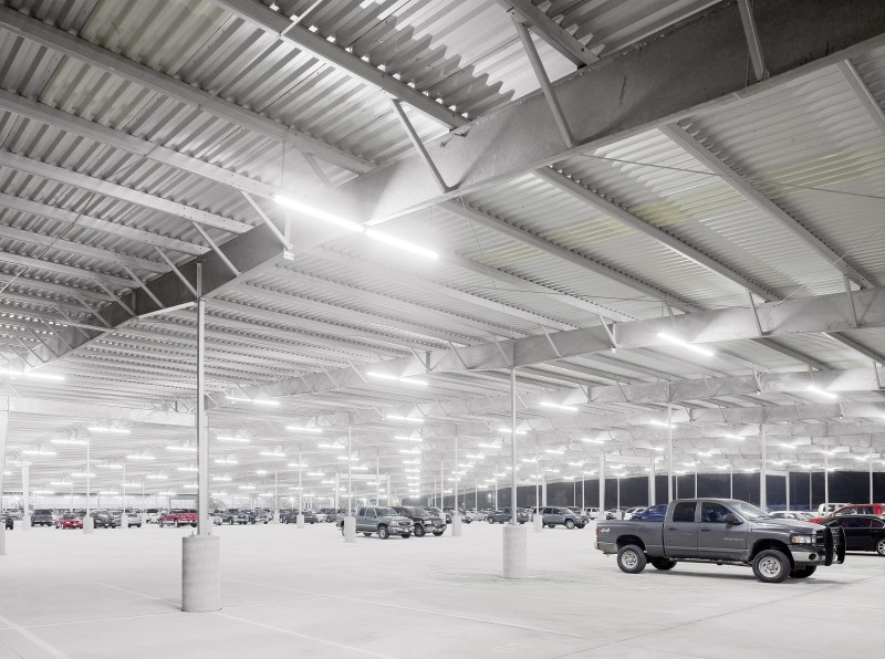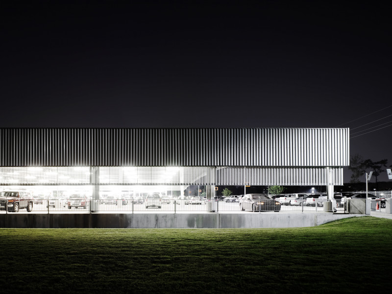 With the parking shed structures constructed primarily of pre-engineered metal systems, corrugated panels (both solid and translucent), and other standardized prefabricated components, the project leverages common materials to achieve economy and repeatability. Within this context, the two volumes form a dialogue of complementary differences: one expansive and permeable, the other compressed and focused. Together, they articulate a hybrid type—part general infrastructure and partly a specific architectural experience—defined by scale, sequence, and material clarity.