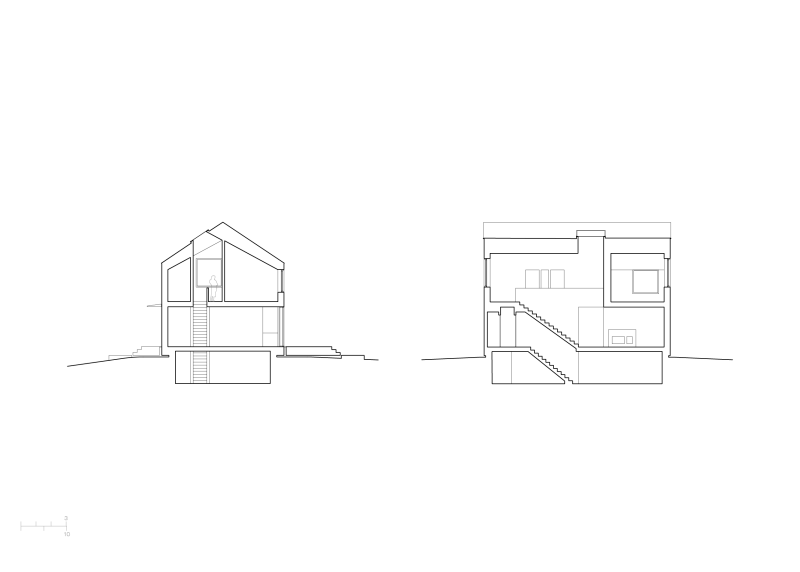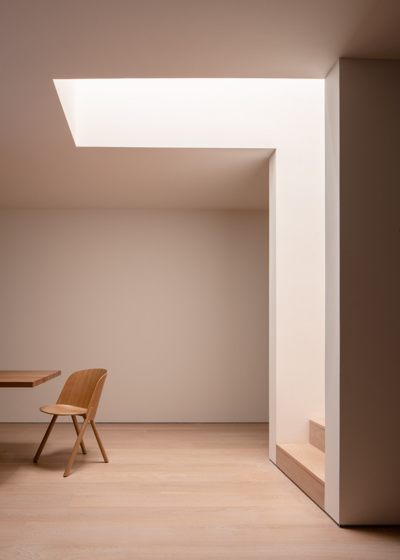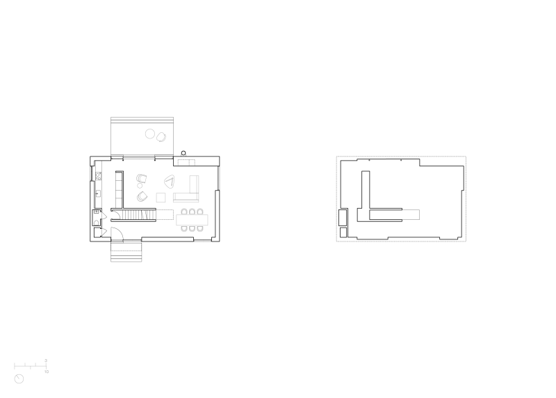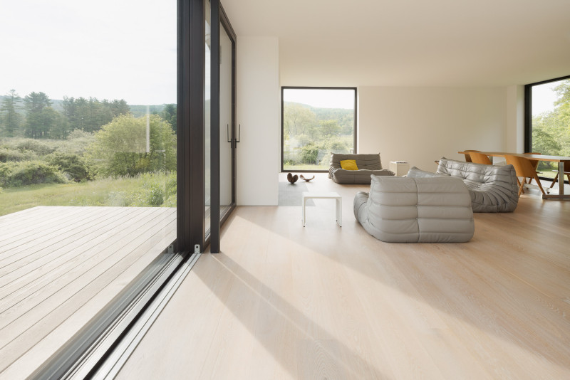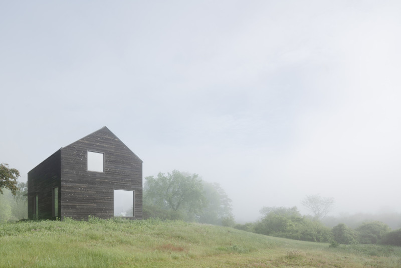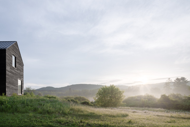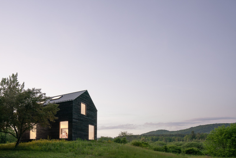 House FIVE is situated in the countryside context of a nearby river, wetlands, and the Berkshire mountain landscape beyond. The house incorporates qualities of the surrounding landscape into a series of spatial view vectors that orient and extend the interior experience into the larger site. Organized on a modest footprint across two floors, the design combines an open living, dining, and kitchen area on the lower level in a pinwheel configuration around a combined light shaft and primary stair leading to the upper floor.