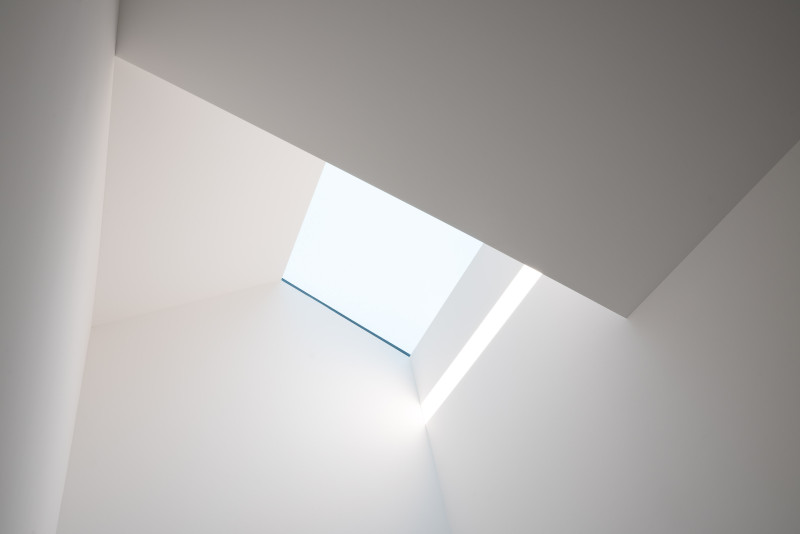 House FIVE employs construction methods that support both economy and energy performance. A prefabricated scissor truss system enables the sculptural integration of three skylights while allowing for a deep roof cavity filled with dense-pack cellulose insulation, achieving R60 roof performance. The 16-inch-thick exterior walls combine dense-pack cavity insulation with continuous exterior wood fiber board to reach R45 overall.