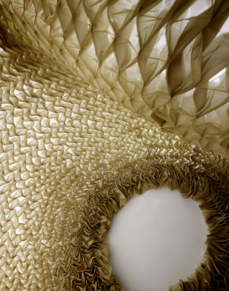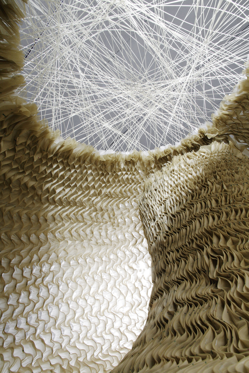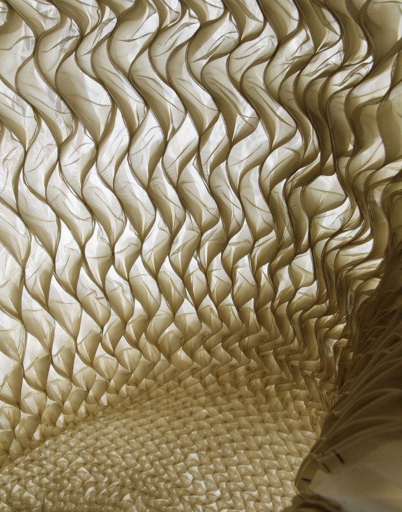The project explores the basic environmental and cultural performance of manufactured architectural shading material. The concept of beauty, transparency, publicity, privacy and the ability of manipulated light to induce specific categories of ambience are intrinsic to the research agenda. Full scale prototypes address the problem of leaving the wall as a decorative scrim and moving into a self supported environmental skin.